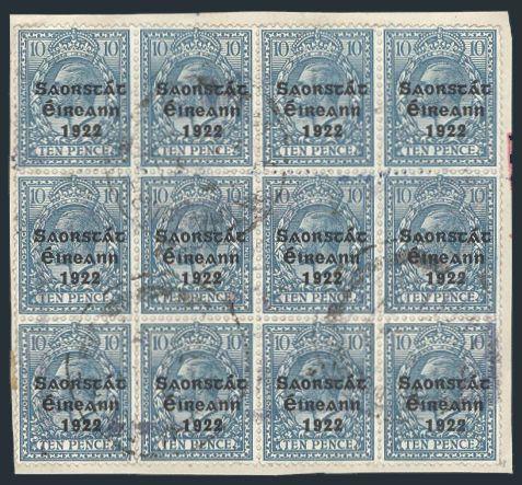 2707 54 image54, Block of 12 of the 10p light blue tied on piece. Scarce used multiple. VF (Image) Cat 990.00