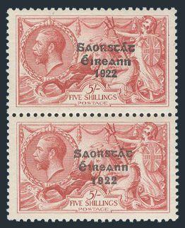 2717 78a image78a, Five Shilling Seahorse vertical pair showing WIDE AND NARROW "1922". Beautifully centered, pristine fresh colour, XF, bottom stamp is NH (Image) Estimate 700.00+ $Cdn