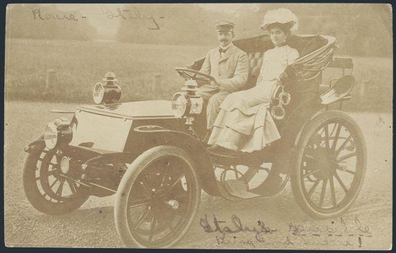photo postcard circa 1910 depicting KING VICTOR EMMANUEL & QUEEN HELENA in an early classic car. Has message on reverse but not mailed. F (Image)