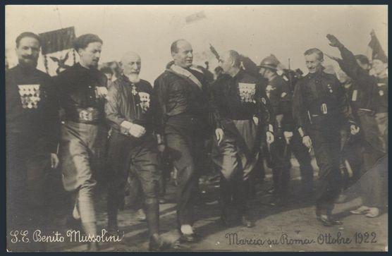real photo postcard depicting MUSSOLINI & the BLACK SHIRTS MARCHING on Rome, Oct 1922. Has message on reverse but not mailed. VF (Image)