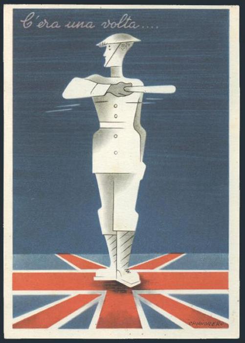 2814   imageUnused WWII colour illustrated PRO-BRITISH Patriotic postcard depicting British soldier directing military traffic while standing on top of Union Jack. Caption "Once upon a time". VF (Image) Estimate 75.00+ $Cdn