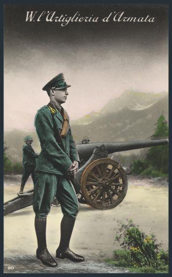 2815   imageFour diff WWII colourized photo Propaganda postcards (3 unused, 1 used). Depict soldiers at attention & in action with cannon & crew in mountainous area. VF (4 diff) (Image) Estimate 150.00+ $Cdn