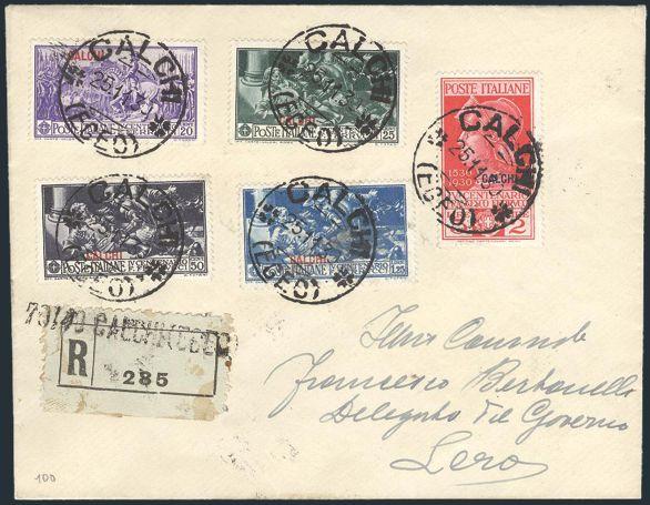 2816 CALCHI 12-16 imageCALCHI 12-16, Complete Ferrucci set neatly tied by Calachi 25 Nov, 1930 CDS's on Reg'd cover to Lero. VF. Cat $125 US (Image) Estimate 85.00+ $Cdn