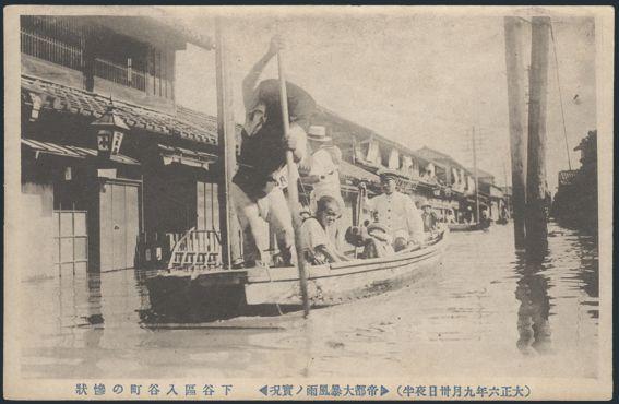 of 4 diff b/w postcards depicting scenes of the GREAT TOKYO FLOOD OF 1910. The flood which was caused by a storm submerged more than 200 square kilometers & other 170,000 buildings. F (4) (Image)