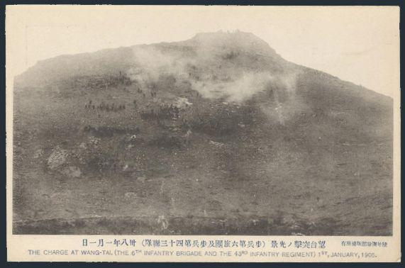 postcard from the Russo-Japanese War. Shows a Japanese charge of the 6th Infantry Brigade & 43rd Infantry Reg't at Wang-Tai 1 Jan 1905. VF (Image)
