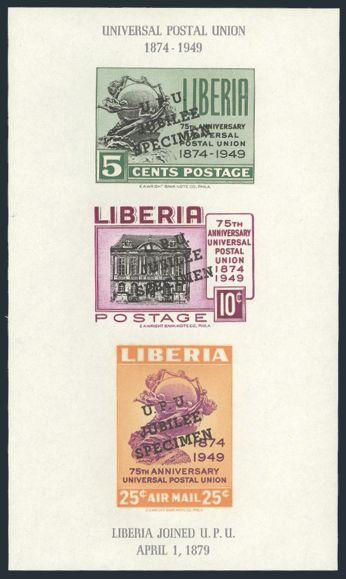 2946 C67a imageC67a, Two UPU imperf souvenir sheets. One normal, the other with U.P.U./JUBILEE/SPECIMEN overprint. VF, NH (2) (Image) Estimate 50.00+ $Cdn