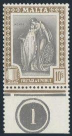 3005 113 image113, Ten Shilling with monogram "1" in the selvedge. F-VF, NH (Image) Estimate 75.00+ $Cdn