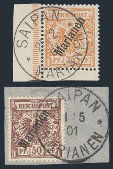 3014 13-5, 17-25 image13-5, 17-25, Kaiser Yacht issues up to 5 Mark. F-VF, many nice cancels incl 22-4 tied on piece by neat Jaluit CDS's (Image) Cat 919.25