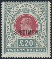 3070 100 image100, Rare KE £20 High Value with "SPECIMEN" overprint, vibrant colours, F, OG (Normal stamp Cat $28,000 US) (Image) Estimate 750.00+ $Cdn