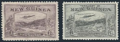 3148 C44-5 imageC44-5, £2 and £5 Airmail FORGERIES, each with gum. VF. Excellent reference items (2 diff) (Image) Estimate 225.00+ $Cdn