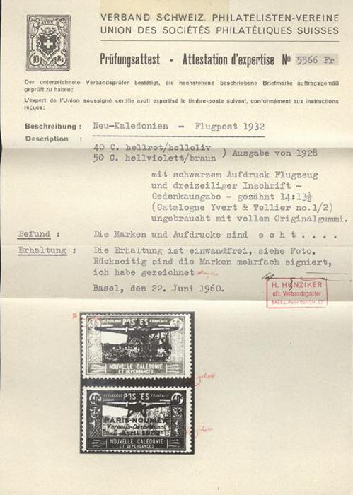 3140 180-1 image180-1, Scarce Paris-Noumea Flight issue. F-VF. Has 1960 Hunziker Certificate. Guarantee b/s's (Image) (View Certificate)