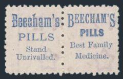 3169 63 image63, With brown-red "Beecham's Pills" ad on back. F, OG (SG #221d, Cat £200) (Image) Estimate 100.00+ $Cdn