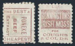 3167 62 62, With red-brown ads on back, 1st setting perf 10, 2 diff for Sunlight Soap. VG-VF, OG, minor flaws (SG #219d, Cat £110) Estimate 40.00+ $Cdn