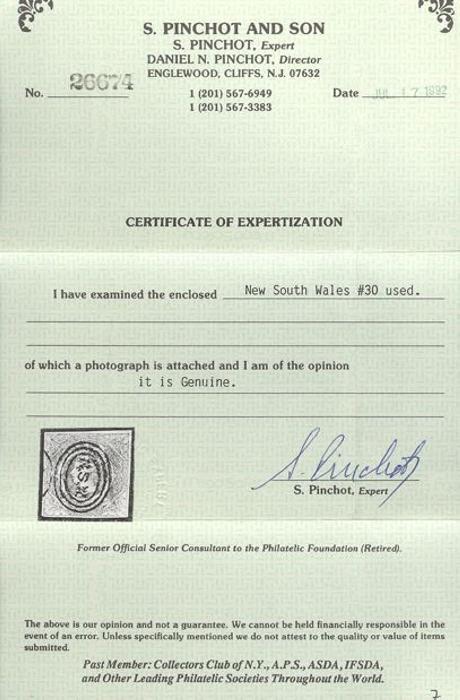 3152 30 image30, Four nicely balanced margins, neat triple-ring 'NSW' cancel, VF. Has 1992 Pinchot Certificate (Image) (View Certificate)