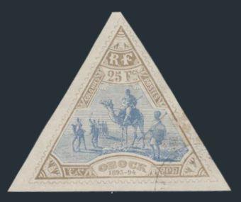 3250 63 image63, Scarce 25Fr Triangle, large margins, VF, lightly cancelled. Signed by Scheller (Image) Cat 875.00