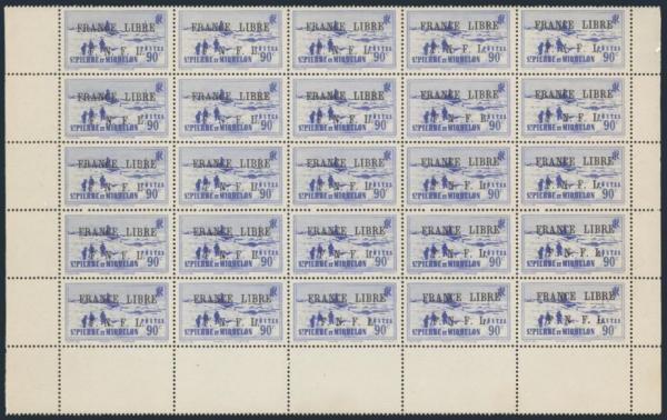 3446 238 image238, Complete setting of 25 of the 90¢ FRANCE LIBRE issue (stamps overprinted in blocks of 25 at a time). VF, NH. Ex Bileski (Image) Cat 525.00+