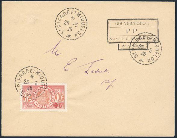 3447 B1 imageB1, Tied by St. Pierre & Miquelon 25 May 1926 CDS on local Official "Gouvernement / PP" Provisional h/s. VF (Image) Estimate 50.00+ $Cdn