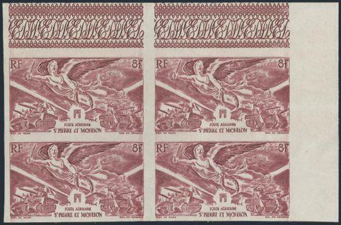 3448 C8 imageC8, UL top margin imprint IMPERF block with fancy imprint in selvedge. VF, NG (Image) Estimate 65.00+ $Cdn