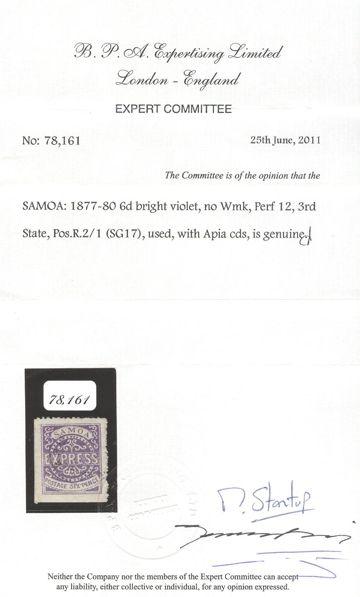 3475 4d image4d, Attractive used single of the Six Pence bright violet Express stamp type III. VF, neat Apia CDS cancel. Has 2011 BPA Certificate (Image) (View Certificate)