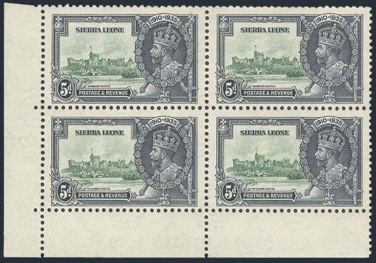 3515 168 image168, KGV Silver Jubilee corner block with the UL stamp having the EXTRA FLAGSTAFF variety. Fresh, F-VF, NH (SG #183a, Cat £195) (Image) Estimate 175.00+ $Cdn