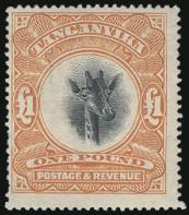 3677 28a image28a, £1 Giraffe with watermark sideways. F, a few pulled perfs (Image) Cat 500.00