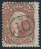 "10" in oval cancel VG-F, tiny thin. Scarce cancel. Cat $425 (Image)