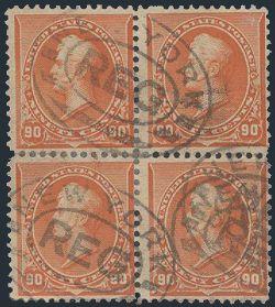 3946 229 image229, Scarce used block, lovely rich colour, neat New York Reg'd oval cancels. F, small flts. Cat $775 (Image) Estimate 175.00+ $Cdn