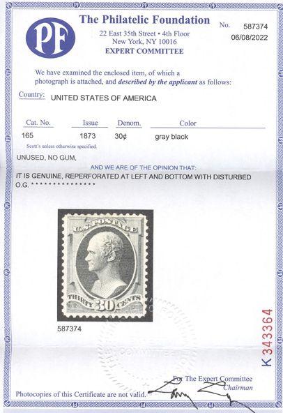 3940 165 image165, Nicely centered mint 30¢ Hamilton, excellent fresh colour, VF, disturbed OG, expertly reperfed at left. Has 2022 Philatelic Foundation Certificate. A nice looking stamp (Image) (View Certificate)