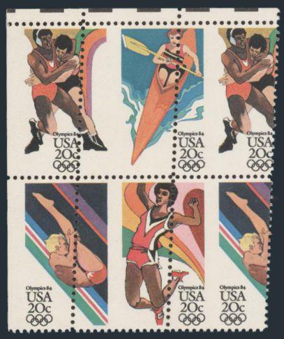 MAJOR MISPERF block of the 20¢ Los Angeles Olympics. VF, NH. A SPECTACULAR BLOCK! (Image)