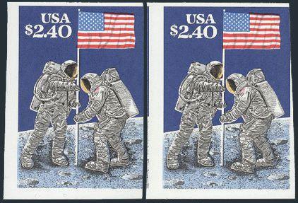 $2.40 Moon Landing lot of 2 IMPERFORATE SINGLES (which were once a pair). F-VF, NH (Image)
