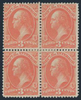 4075 O17 imageO17, Block of the 3¢ Interior, bright fresh colour, F-VF (Image) Cat 350.00