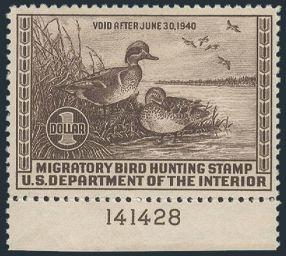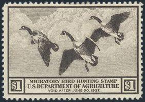 4113 RW11 RW11, Affixed on a 1944-5 Duck Hunting License from Houston Texas. VG+, folded, one edge tear Estimate 50.00+ $Cdn