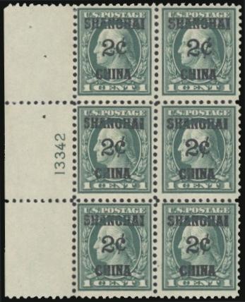 4162 K1 imageK1, Left margin Plate #13342 Block of 6. F-VF, NH, tiny bit of DG on one stamp (Image) Cat 600.00