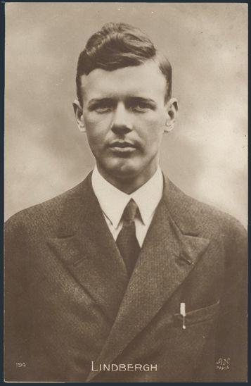 4153   imageTwo diff unused postcards circa 1927 depicting the famous American pilot CHARLES LINDBERGH. One shows him standing in front of his airplane "Spirit of St Louis". VF (2) (Image) Estimate 60.00+ $Cdn