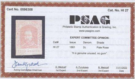 4191 27 image27, Fresh unused 2¢ pale rose King Kamehameha IV on horiz laid paper. VF, four full margins, NG. A nice sound stamp! Has 2022 PSAG Certificate (Image) (View Certificate)