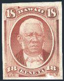 4195 34P4 image34P4, Plate Proof of 18¢ dull rose Mataio Kekuanaoa on card. VF, four full margins, small scuff at bottom (Image) Cat 400.00
