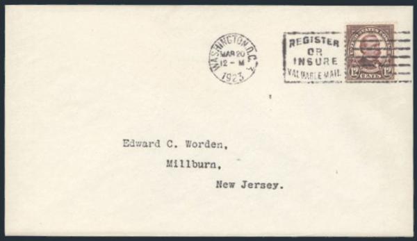 Cleveland 12¢ FDC with Washington DC 20 Mar 1923 cancel, addr to Edward Worden. VF (Image)