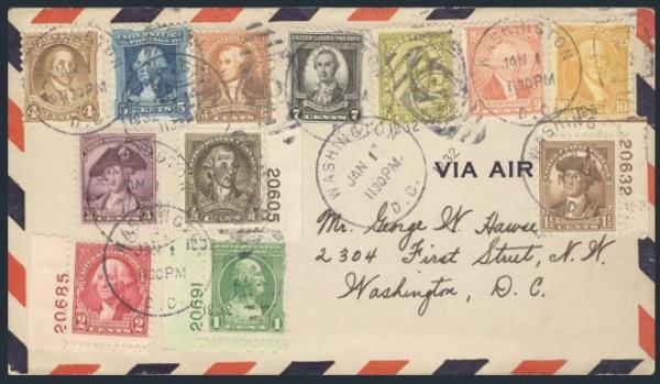 Complete Washington Bicentennial set of 12 diff tied by Washington DC 1 Jan, 1932 cancels on FDC (#704-7 are Plate Number singles). F (Image)