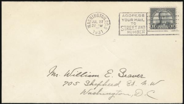 17¢ FDC from Washington DC 27 July 1931. VF. Scarce. Cat $400 US (Image)