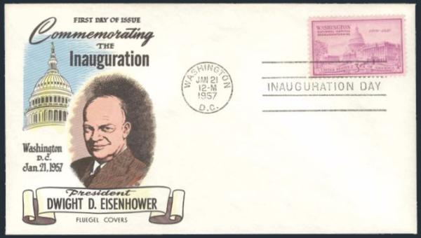 Collection of 6 diff President D.D. EISENHOWER 1953 & 1957 INAUGURATION cach covers. One is a very attractive colour illustrated Fluegel 1957 cover. VF, most unaddr
