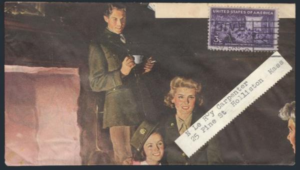 by Philadelphia slogan cancel on homemade WWII Patriotic cover to Holliston, Mass. Cover created by folding colour illustrated magazine page with view of serviceman & woman at leisure. F-VF. Attractive & unusual (Image)