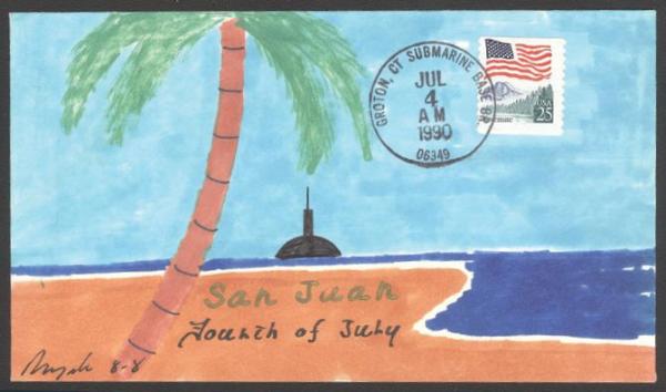 2881, Three diff HAND PAINTED COVERS FOR U.S. NAVY. One for OPERATION "DESERT SHIELD" 1990 and two for "USS SAN JUAN" SUBMARINE 1990 and 1995. Vibrant eye-catching covers all being artist signed. VF (3) (Image)