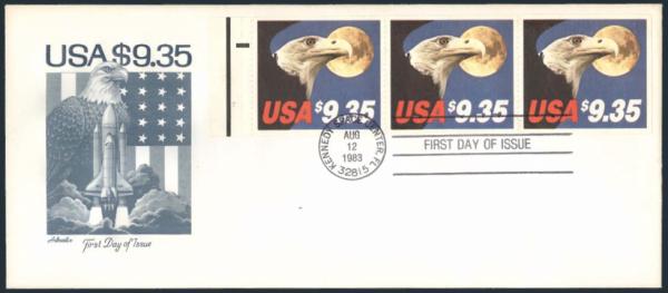 Eagle $9.35 Booklet Pane tied by Kennedy Space Center, Fla 12 Aug 1983 cancel #10 Artmaster cach FDC. VF, unaddr (Image)