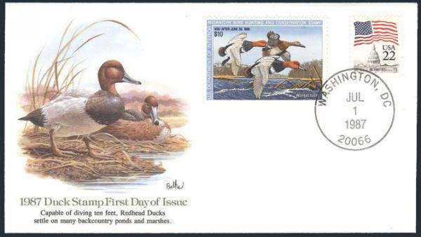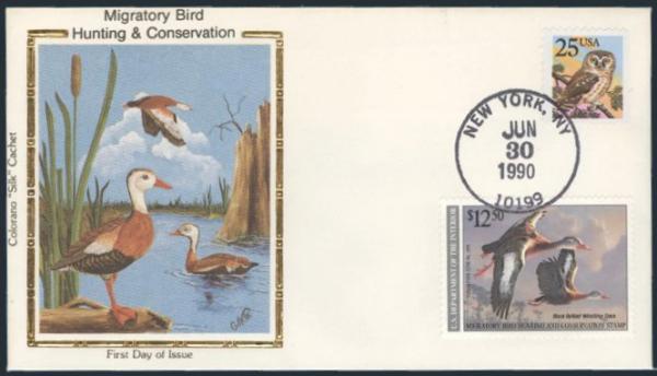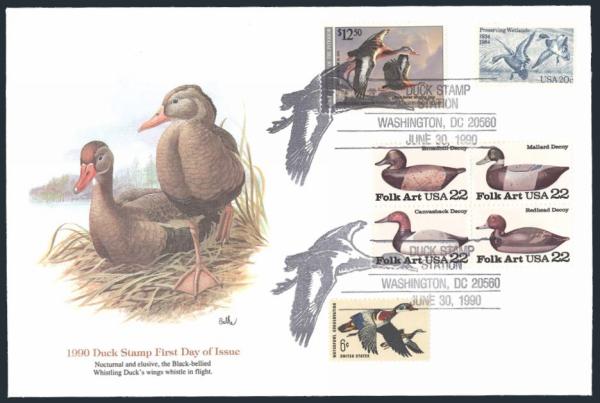 with 6 diff other Duck stamps tied on gorgeous Fleetwood colour cach FDC. Printed write-up on the stamp designer Don Balke accompanies. VF (Image)