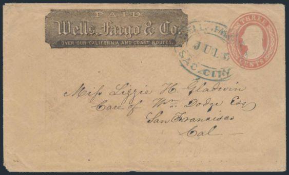 "Wells, Fargo & Co. / Paid" imprint & blue oval circa 1850's Wells, Fargo & Co. Sac. City cancel to San Francisco. F, back flap flt (Image)