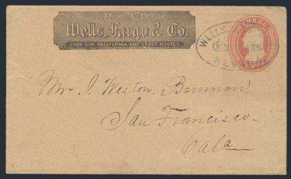 "Wells, Fargo & Co. / Paid" imprint & blue oval Wells, Fargo & Co. / Express / Nevada" cancel circa 1850's. Addr to San Francisco. F-VF (Image)