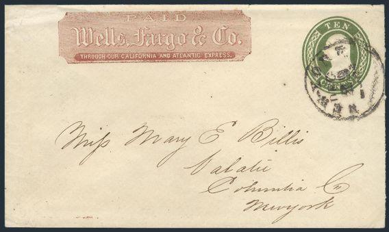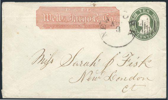 red brown "Wells, Fargo & Co. / Paid" imprint & New York circa 1850's duplex cancel to New London, Ct. F (Image)
