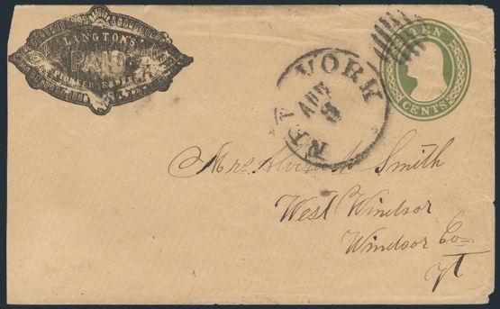 "LANGTON'S / PAID / PIONEER EXPRESS" circa 1850's imprint & New York duplex cancel. Addr to West Windsor, Vt. F, slightly reduced, minor flaws. Scarce (Image)