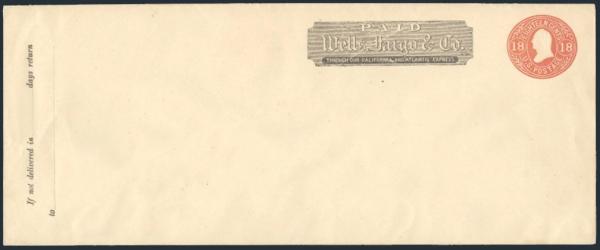 Washington 18¢ issue circa 1864 with "Wells, Fargo & Co. / Paid" imprint. F-VF (Image)