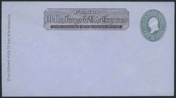 Unused 2¢ Washington on blue issue circa 1880's with "Wells, Fargo & Co. / Paid" imprint. VF (Image)